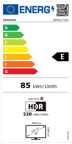 Ekrano įstrižainė | 65" (165,1 cm) | Energijos sąnaudų klasė (A-G) | E |