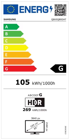 Ekrano įstrižainė | 55" (~140 cm) | Energijos sąnaudų klasė (A-G) | E |